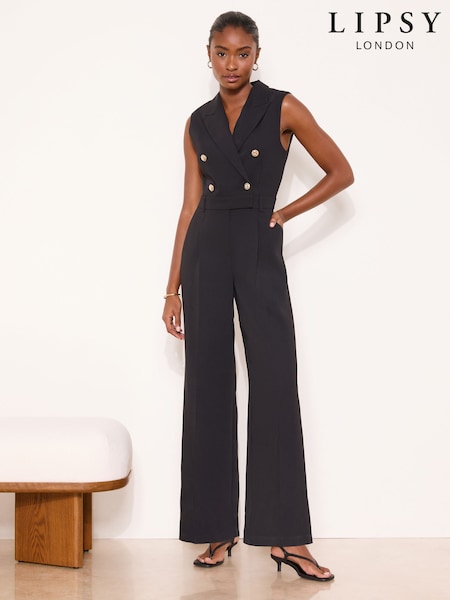 Lipsy Red Tux Sleeveless Military Button Jumpsuit