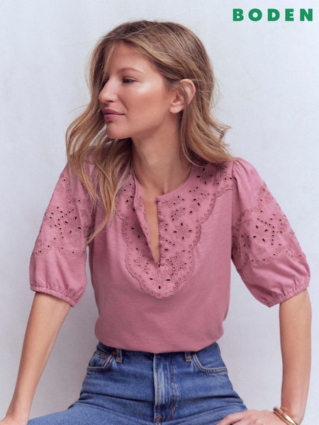 粉色 - Boden Ada Broderie Mix Top